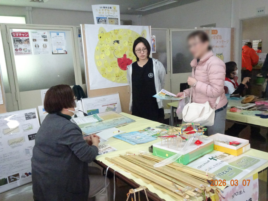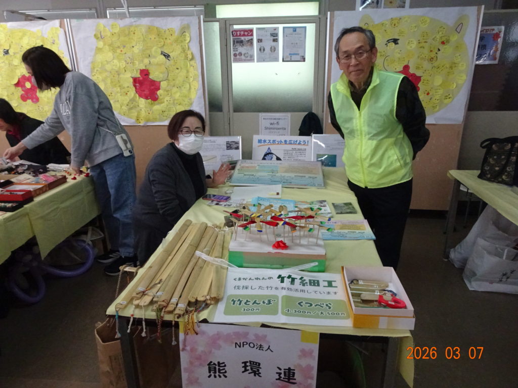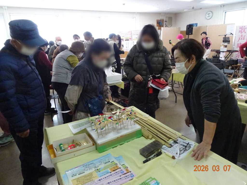 3/7(土)に熊谷市新活動支援センターにて開催された「みんなの活動見本市」にて、団体紹介と竹とんぼ・くつべらの販売を行いました。